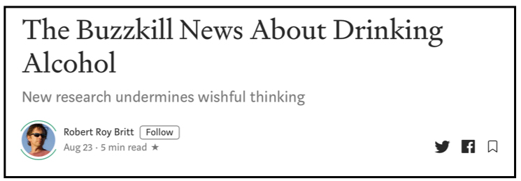 A family member alerted me recently to the Medium article with the above headline. Knowing I have a long-adopted European lifestyle habit of having a glass (sometimes two) of wine with a meal, she was concerned about what seemed to be a significant health risk.
